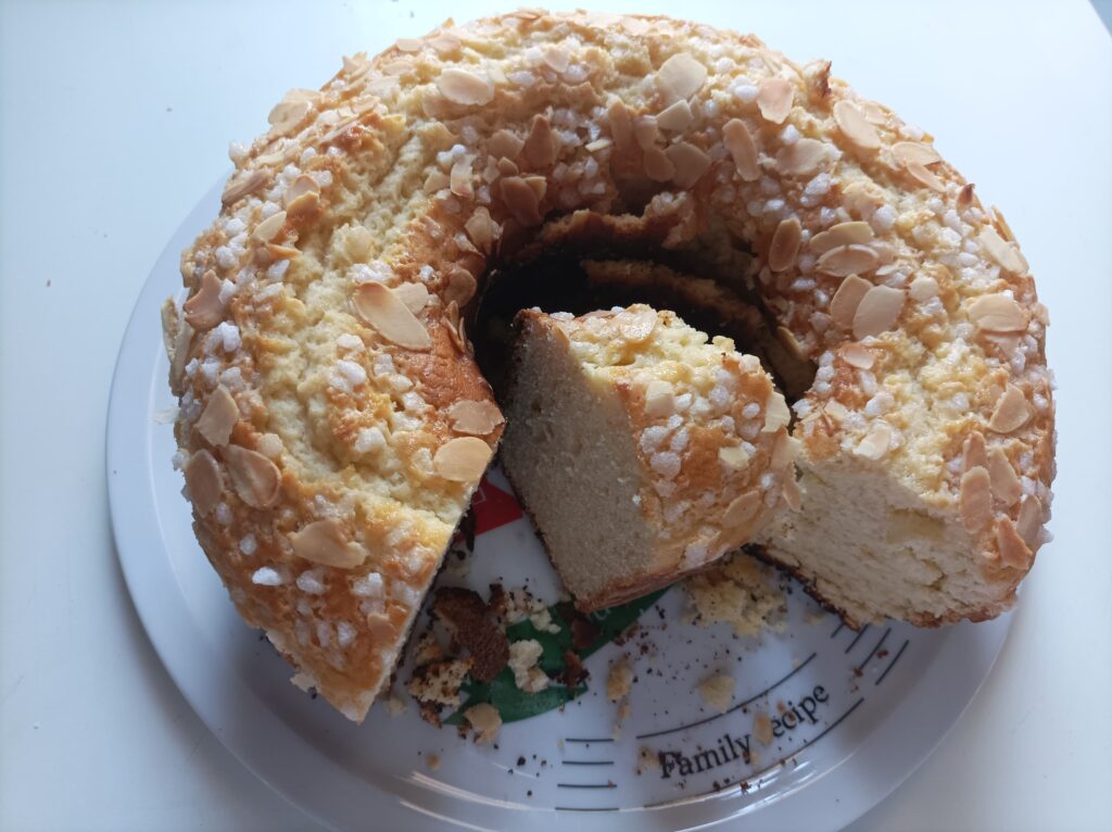 Comme toujours, il existe autant de recettes de ciambella qu’il y a de grands-mères en Italie. Certaines la préparent avec du lait, d’autres avec de l’huile ou du saindoux, et enfin, il y a celles qui utilisent la ricotta. Les quantités de farine, de beurre, de ricotta varient elles aussi. J’ai donc tenté plusieurs recettes et ajusté les quantités avant de trouver un bon équilibre.